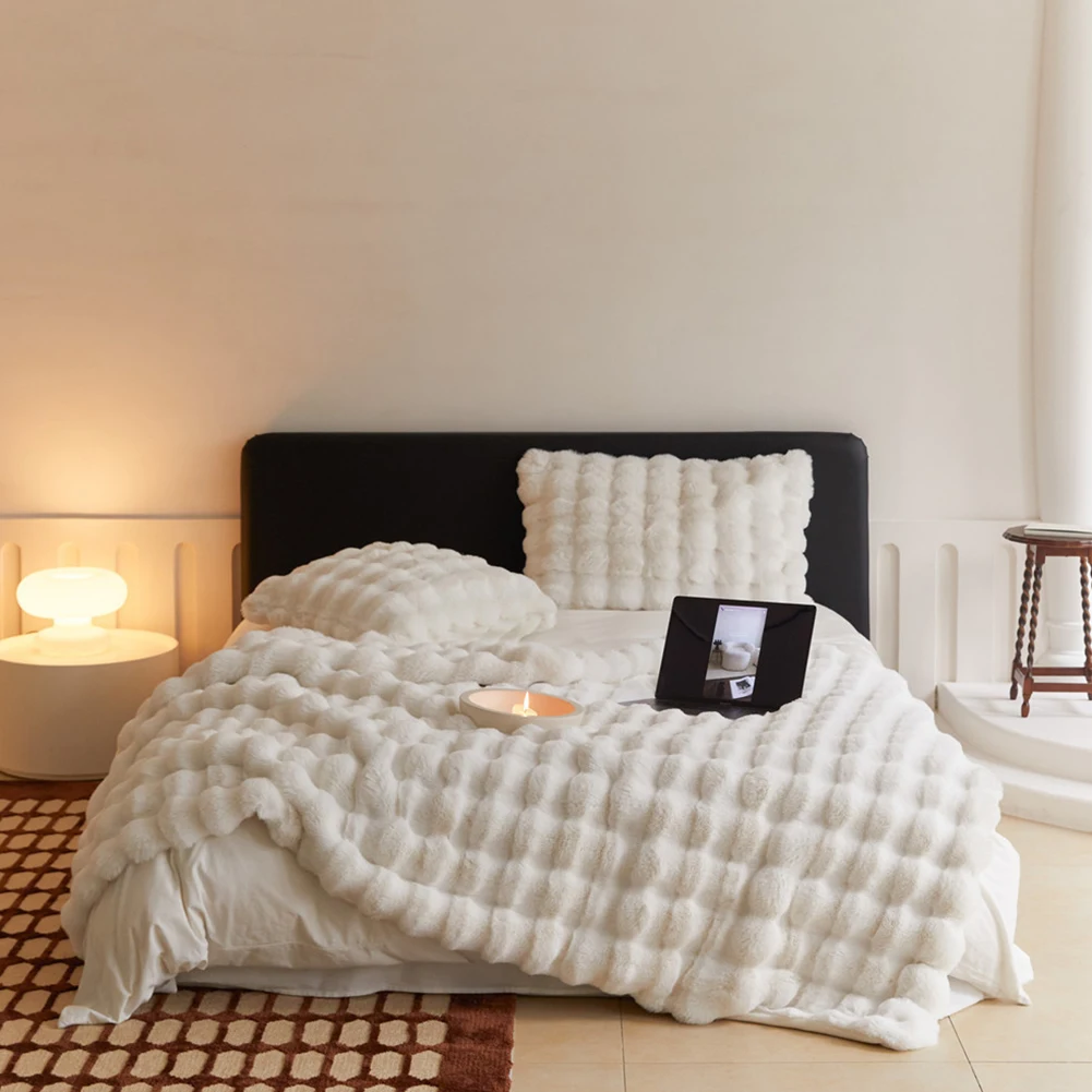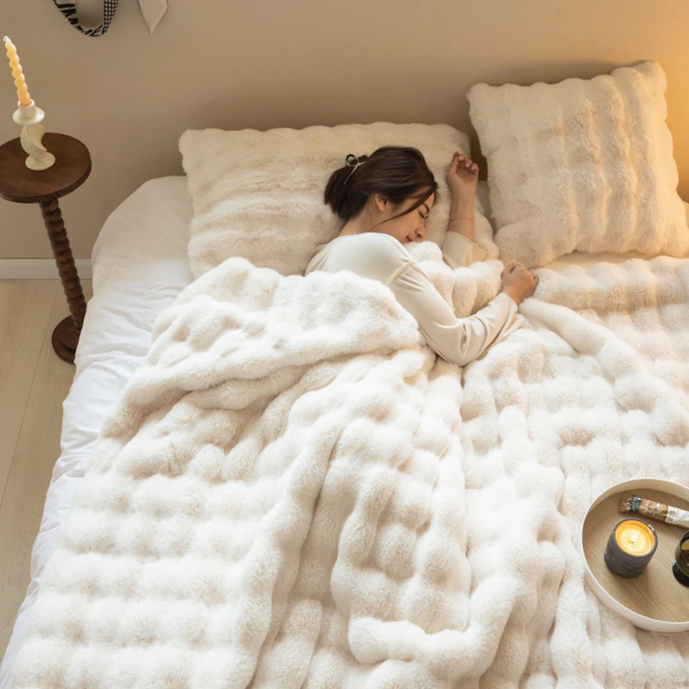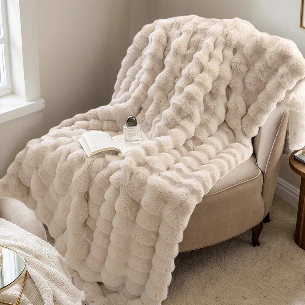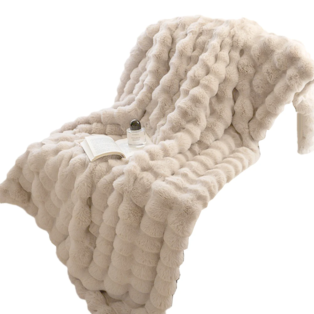 Cozy Toscana Rabbit Fur Blanket Comfortable Office Nap and Sofa Cover Ins Bubble Velvet Blanket for Couch Sofa Office Bed Travel