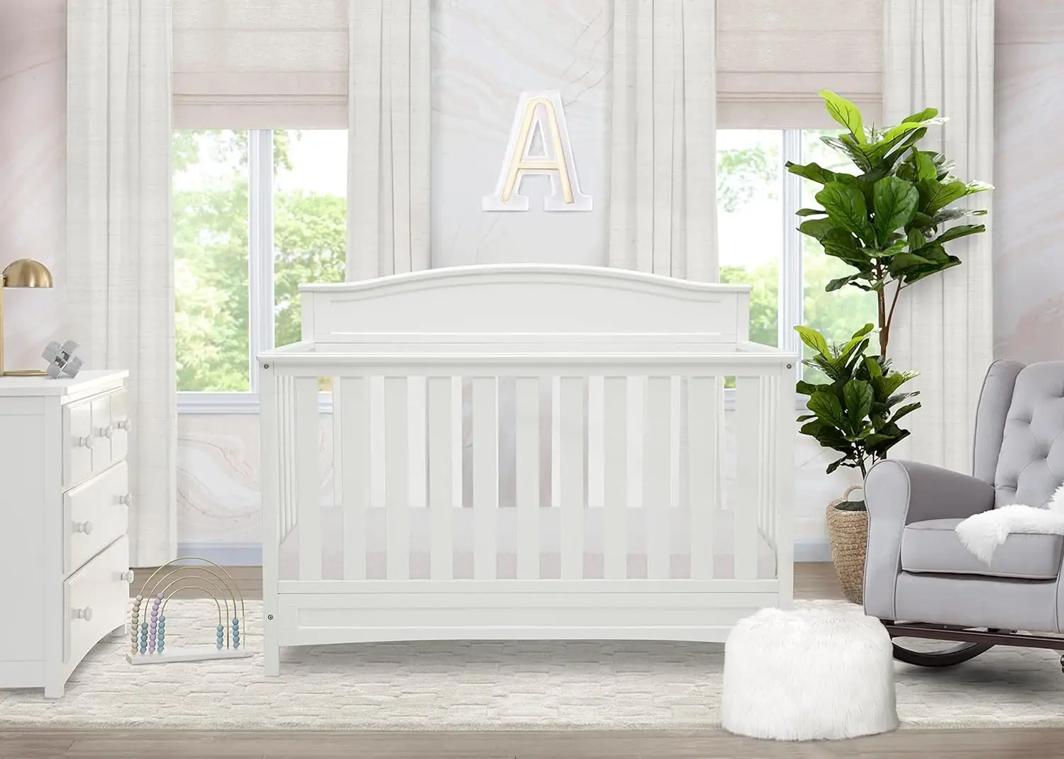 4-in-1 Convertible Baby Crib - Green guard Gold Certified, White