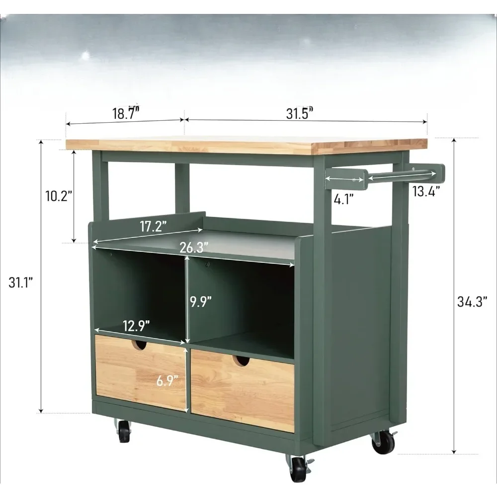 - Durable Butcher Block Top: The wide wood top serves as a durable butcher block, ideal for food preparation tasks such as chopping, cutting, or serving. Its robust construction ensures longevity, making it a reliable addition to your kitchen