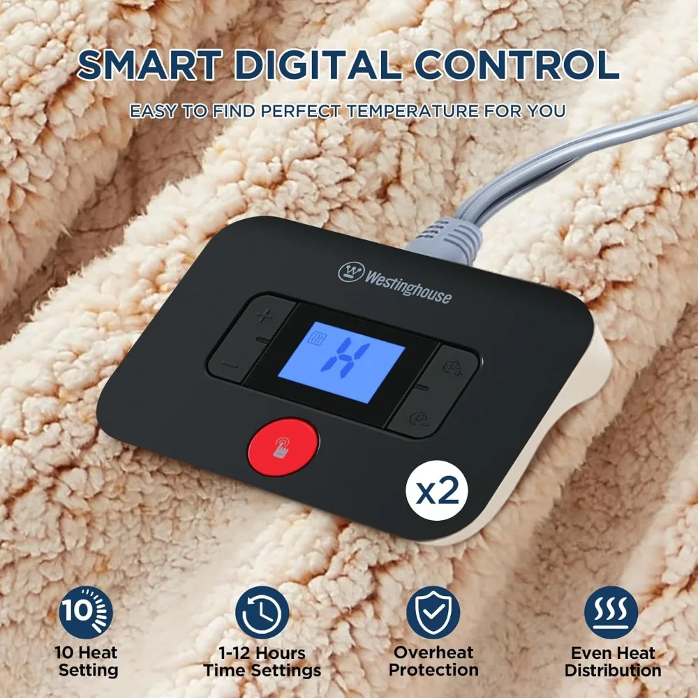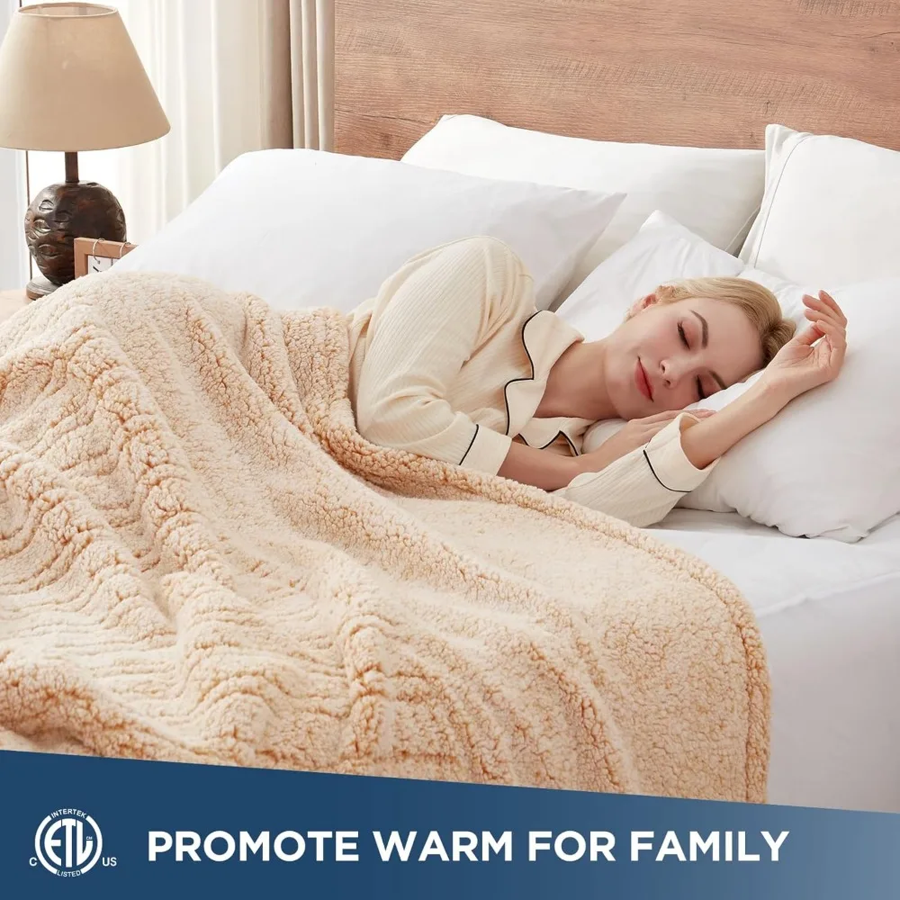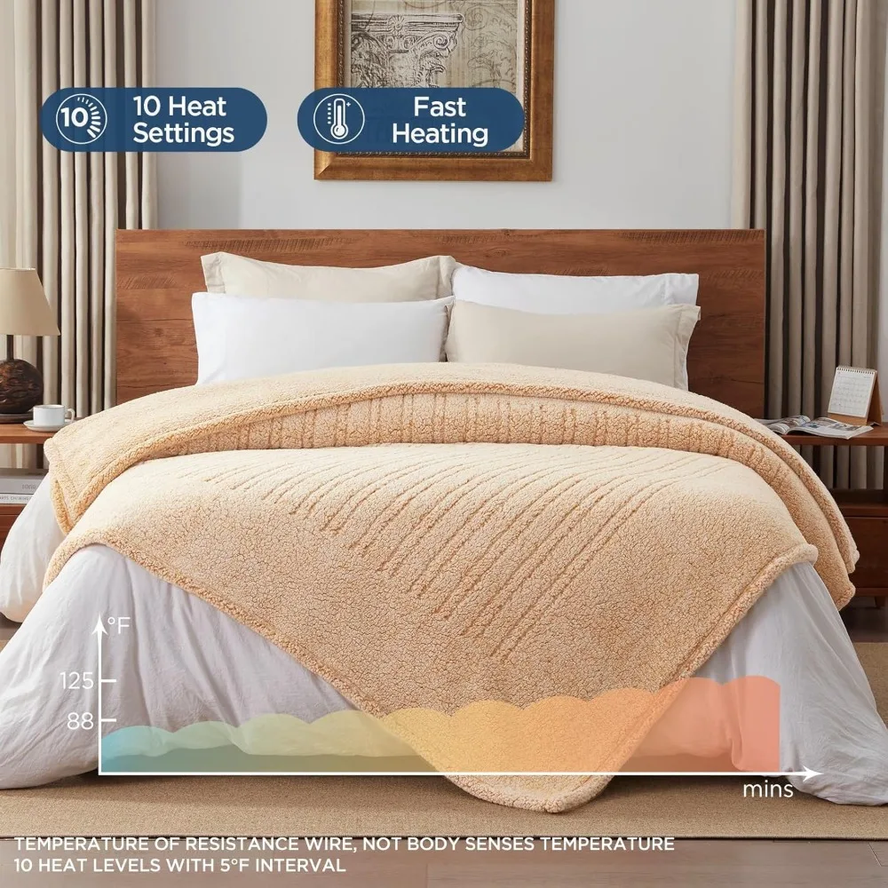 Electric Blanket Queen Size, Soft Plush Sherpa, 10 Heating Levels & 1-12 Hours Auto-Off