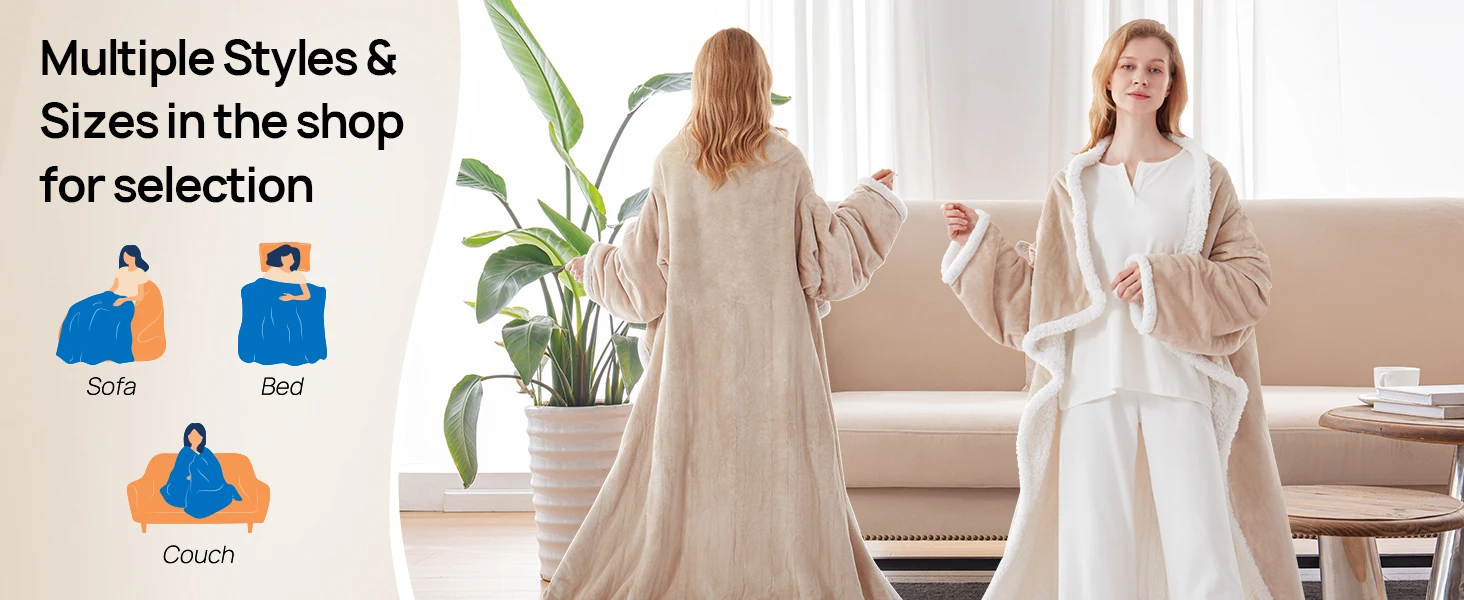 Electric Snuggle Throw Blankets, with Foot Pocket, Wearable Heated Throw with Sleeves, 6 Heating Levels & 2 to 10 Hours Heating