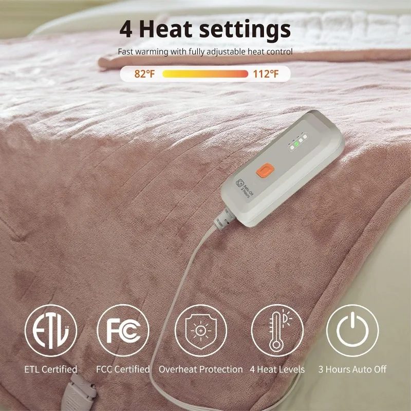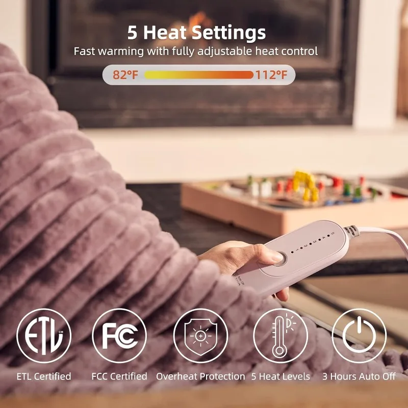 Electric Throw 50''X60''-Soft Silky Plush Electric Blanket. 4 Heating Level & 3 Hour Auto Off