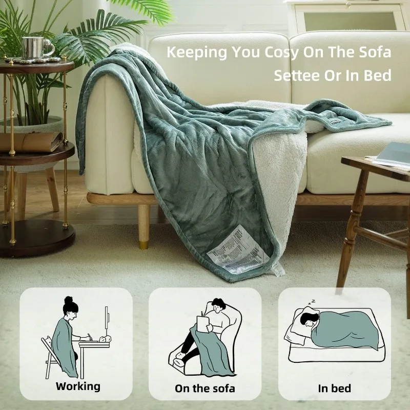 - Extremely Comfortable: This heated throw blanket has comfort Ultra soft silky plush to Sherpa Reversible with high quality heating filament that runs throughout the heated blanket throw to provide you with the maximum warmth and comfort. electric blanket throw is perfect for keeping you cosy on the sofa, settee or in bed and on both freezing cold winter nights.