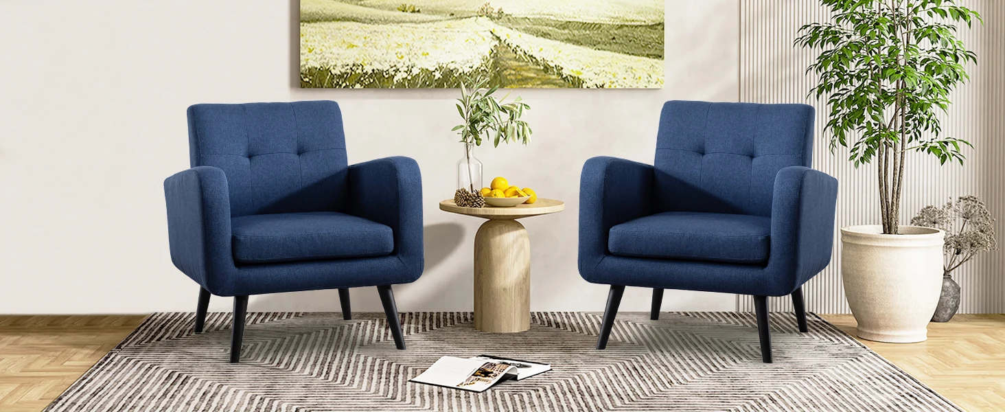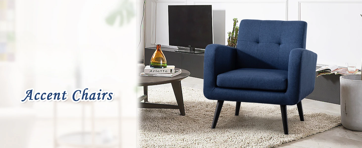 Living Room Chairs, Mid century Modern Fabric Chair, Blue