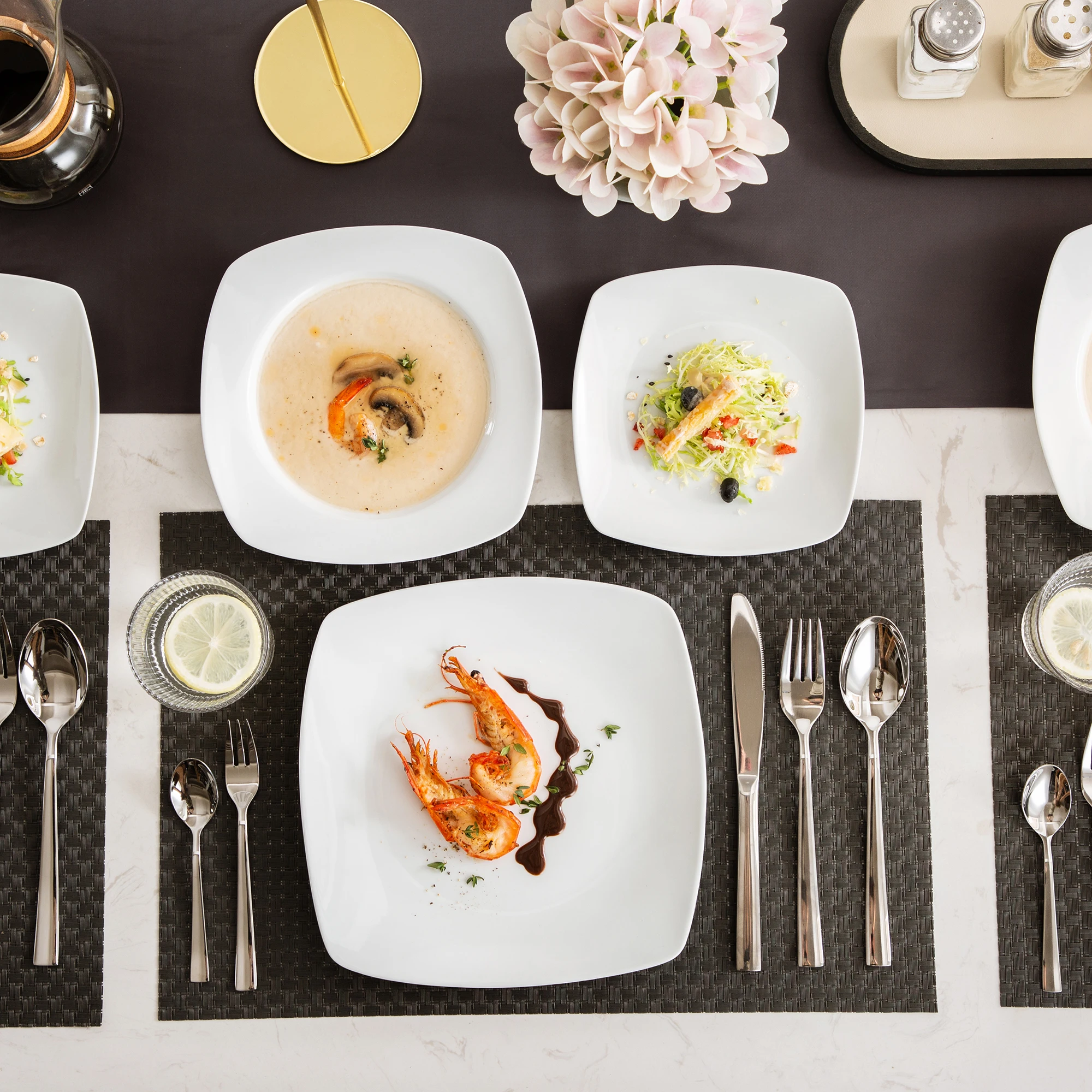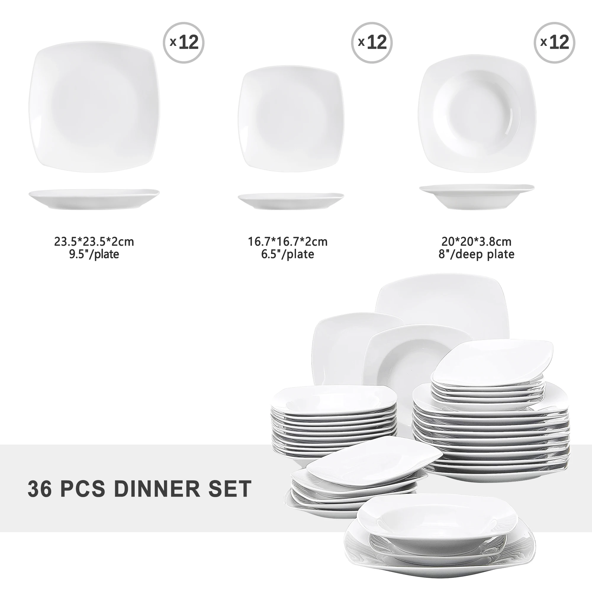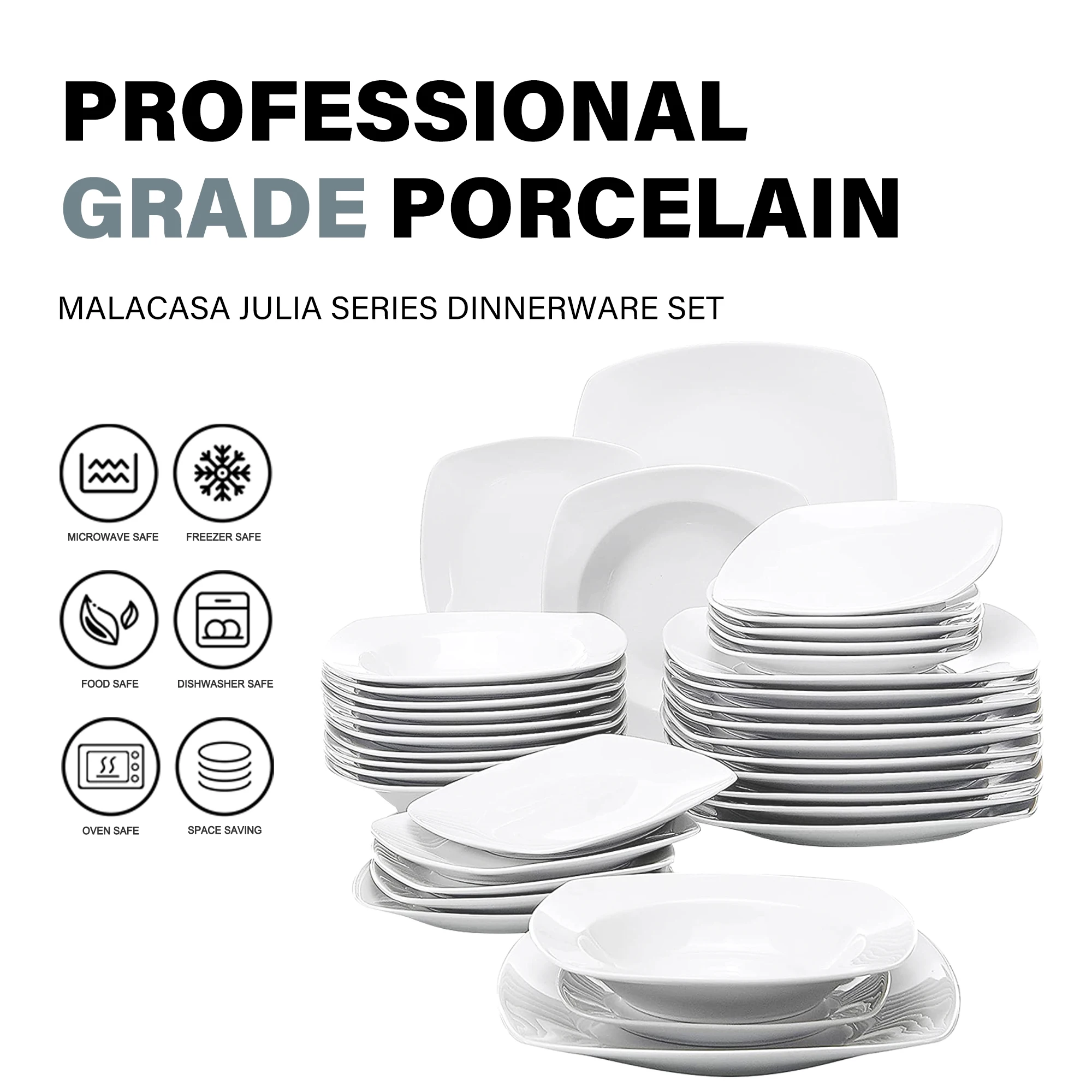 MALACASA JULIA 36-Piece White Porcelain Dinner Set , Dinner Soup Dessert Plates for 12