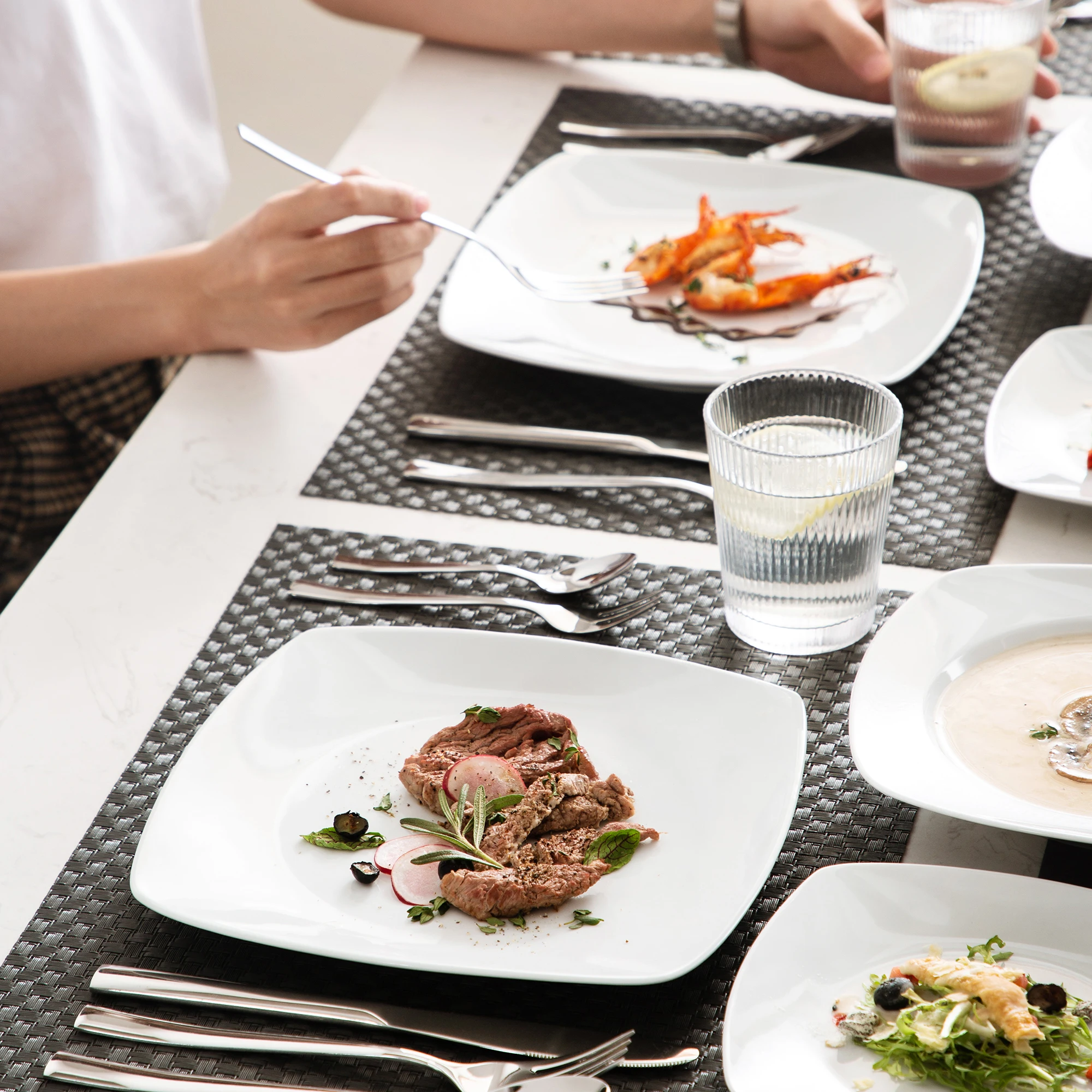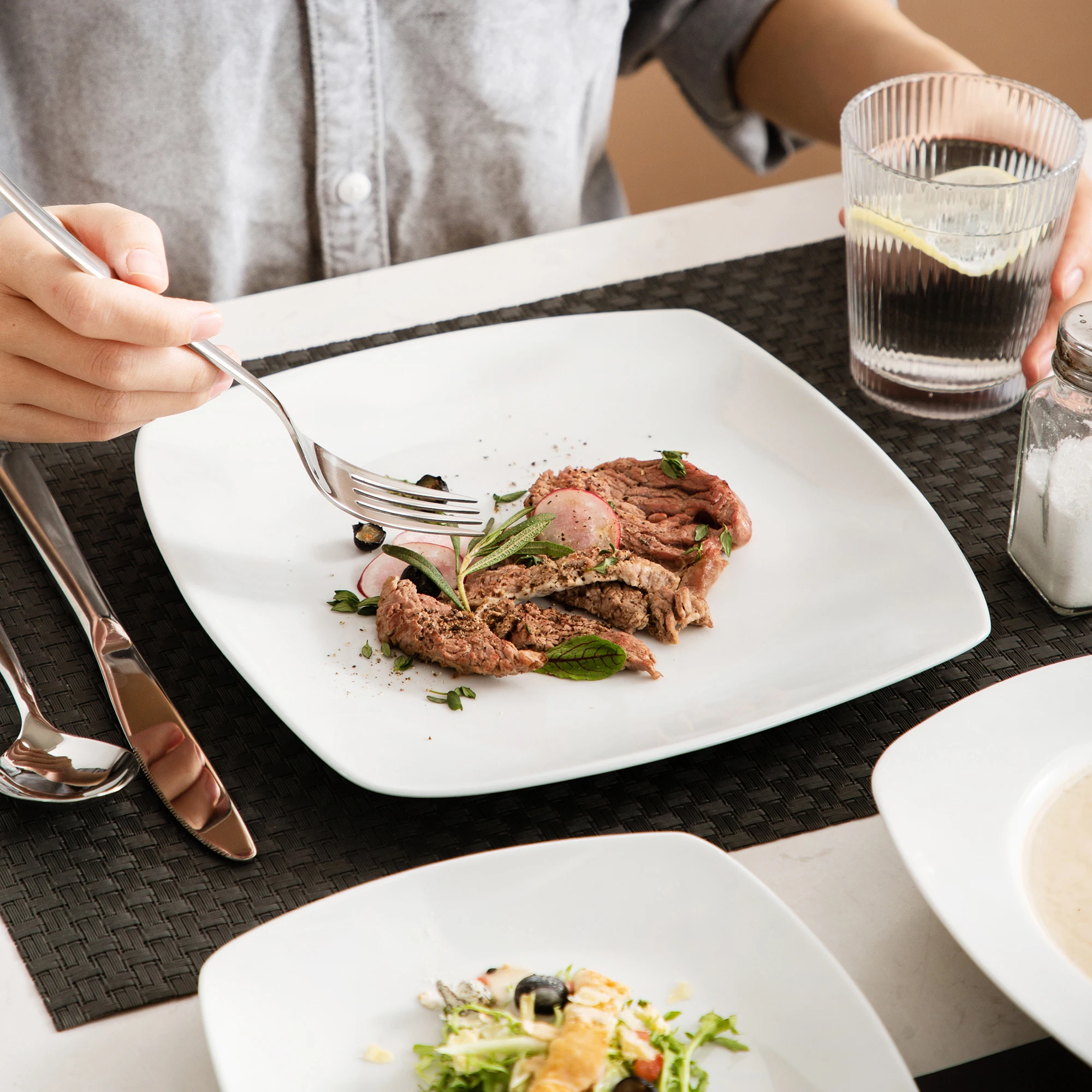 Easy to clean - fired in high temperature, unmatched thermal resistance from -65F to 500F, not easy to be broken. Perfectly compatible with many cold & hot food without worry about chips, nicks, cracks, and scratches. Our outstanding dinnerware set can be cleaned easily and safely in the dishwasher, and you can use them directly in the microwave.