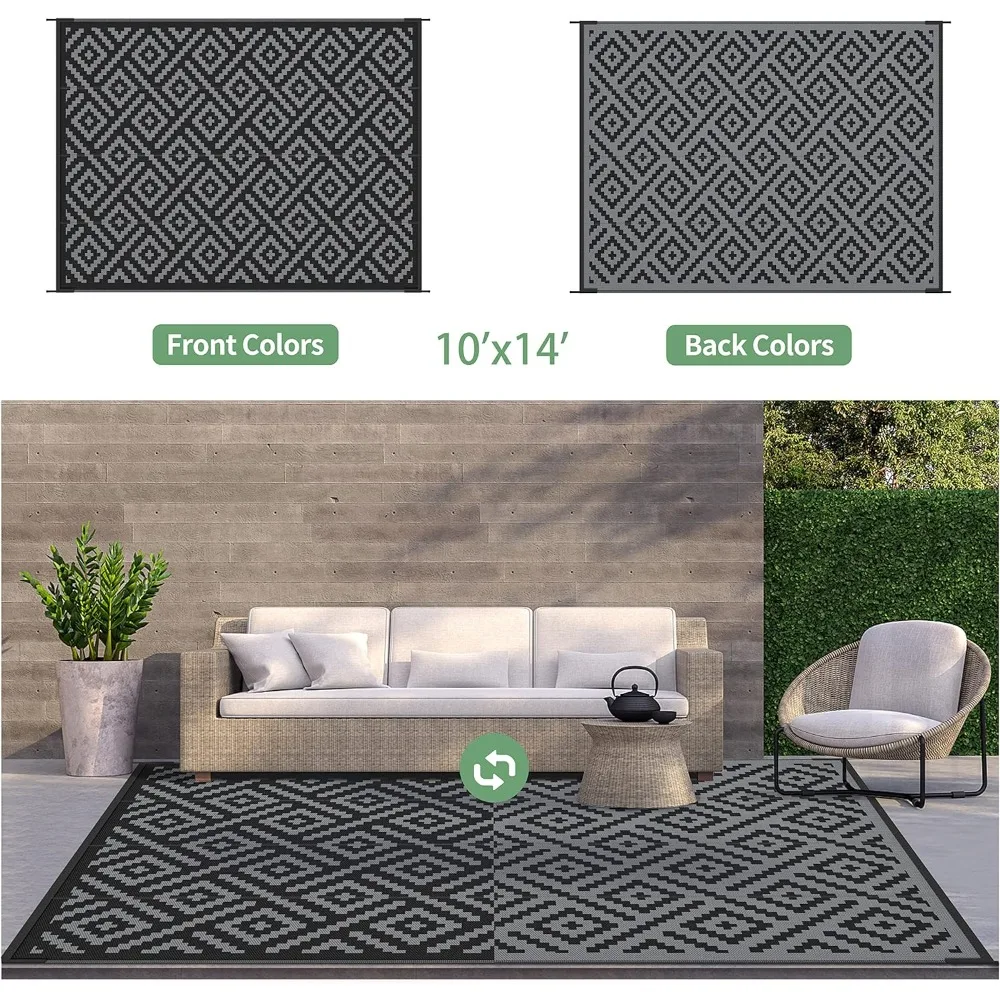 Outdoor Rug,10x14 Waterproof Large Mat Reversible Rv, Porch, Balcony