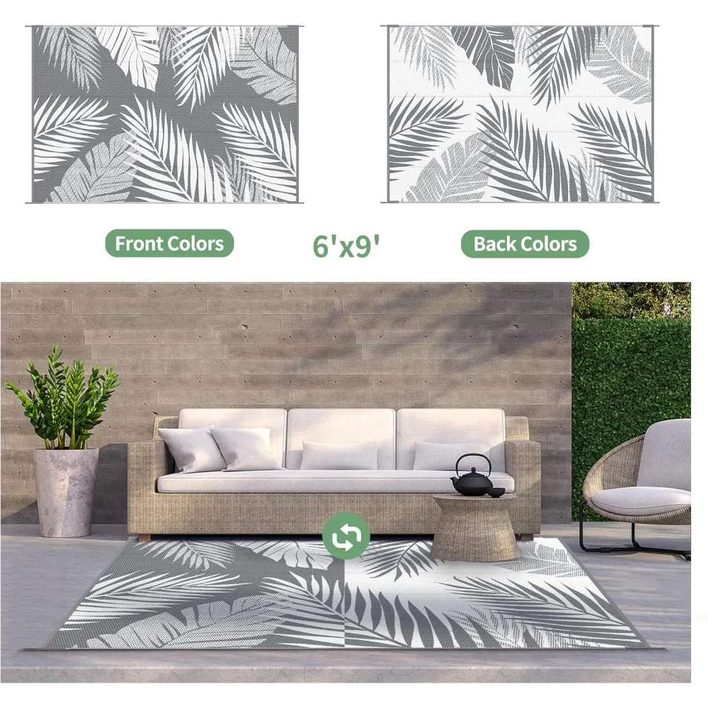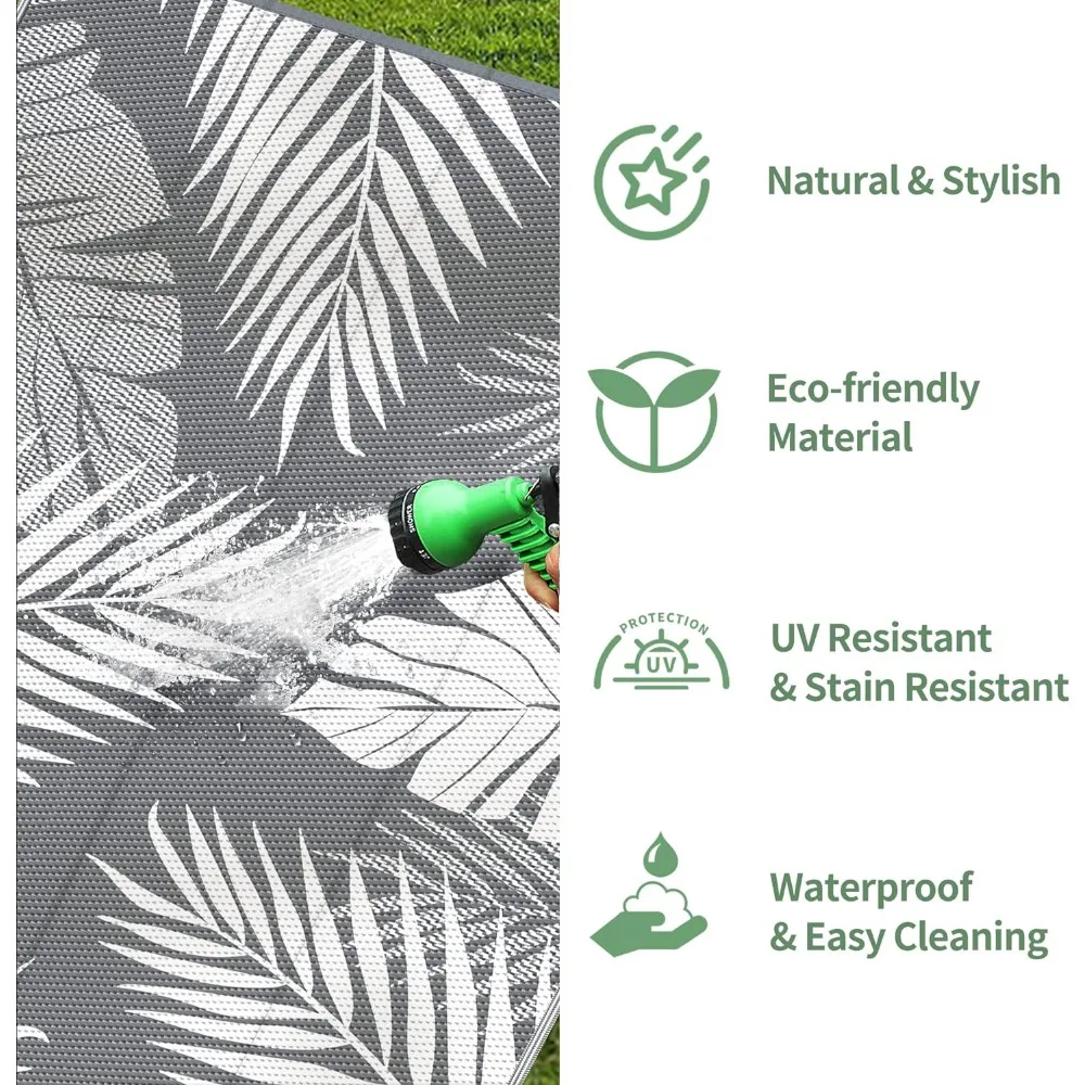 - 【PALM LEAF DESIGN & TWO-SIDED PATTERN】reversible outdoor rug is designed with a double-sided pattern, completing the unique layout of multiple palm leaves. The two shades of grey and white achieve the ultimate fusion. Either side can blend perfectly with nature and look very full and comfortable.