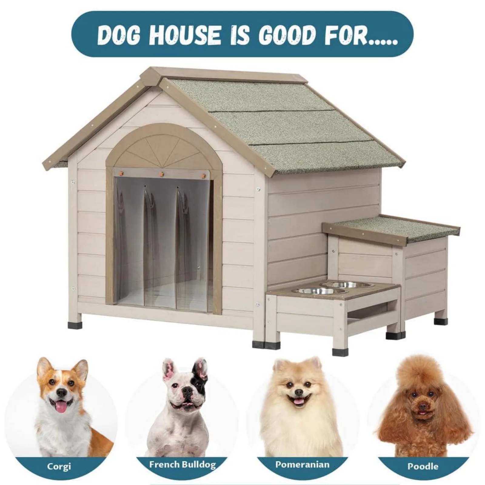 Outdoor Wood House , Small/Medium Dogs, Storage Box , Feeding Station 2 Bowls