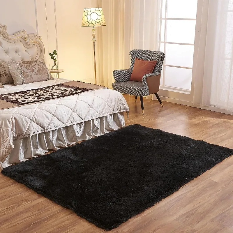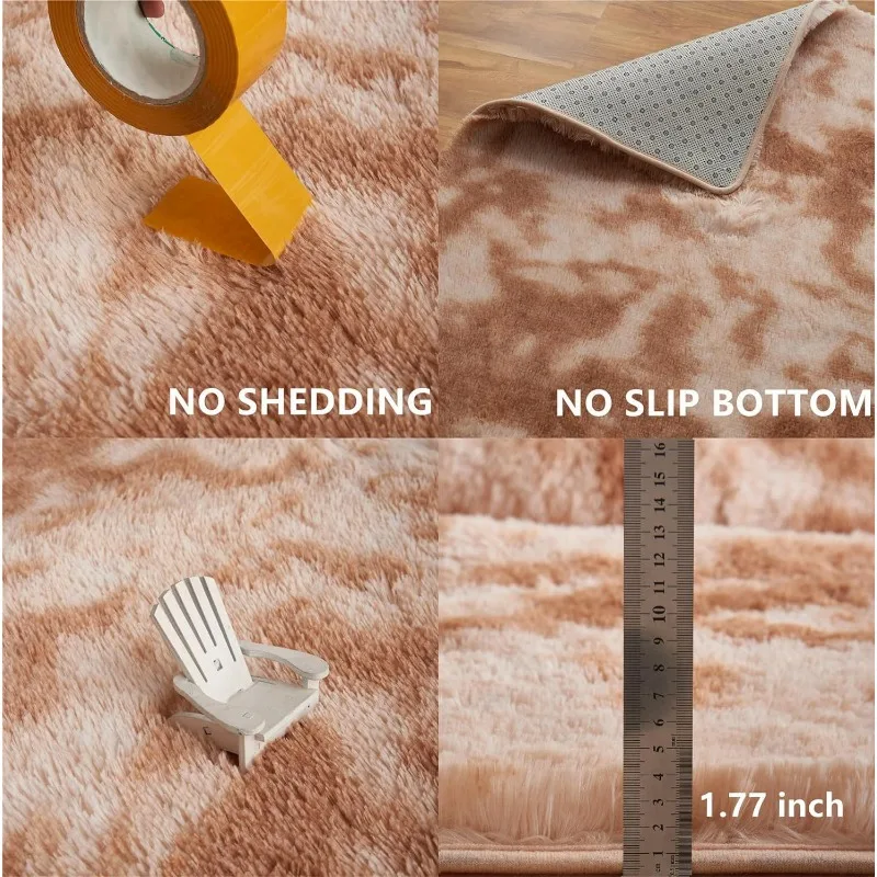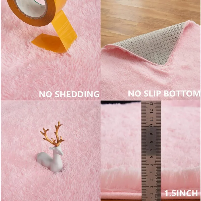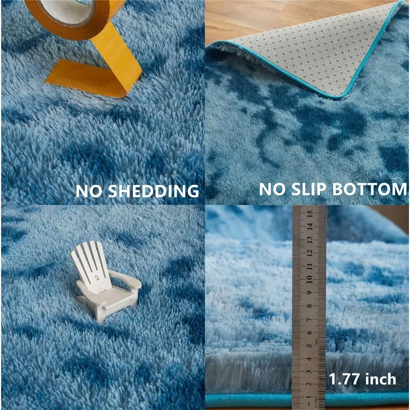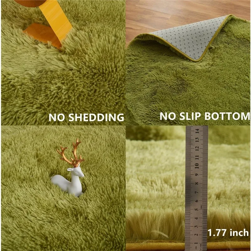 - 【Ultra Soft Area Rug】The top layer of our fluffy rug uses 1.77 inches of fluffy velvet, and its silky smooth texture brings you the softest touch. With high-density sponge interlayer and upgraded non-slip bottom, this shag rug is very suitable for various rooms in the family. The softest touch will also make you feel very relaxed.