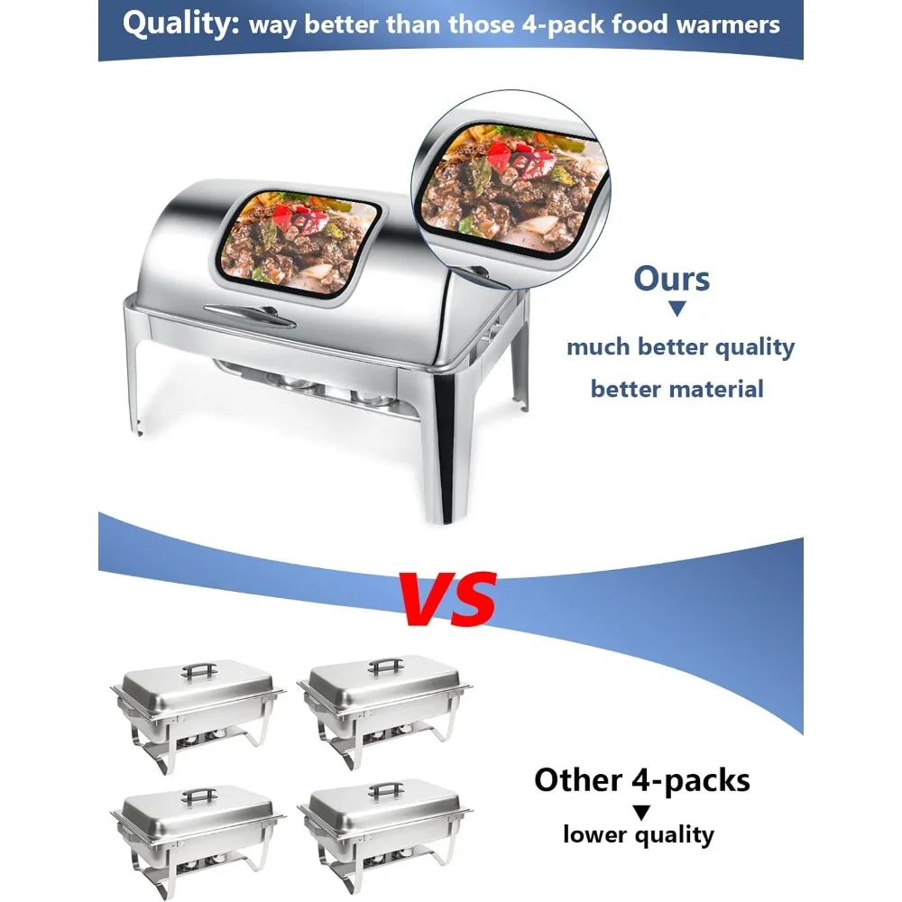 - 【Decorate Your Party with Elegance & Beauty】The integral design makes the buffet servers and warmers more sophisticated. The extra glass windows not only add beauty, but also make it easy to see the food inside the chafing dish without opening the lid. Get more compliments from guests for your party.