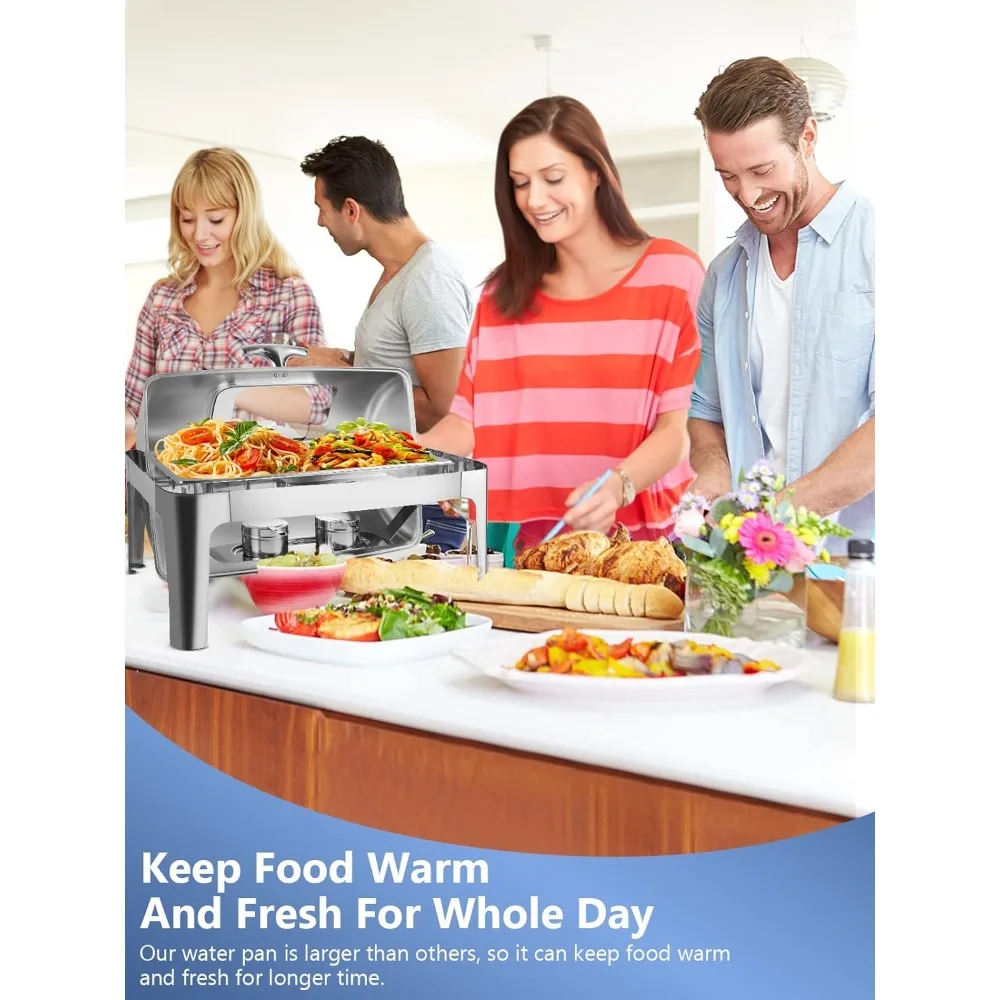 - 【Keep Food Warm & Fresh For Whole Day】The chafing dish buffet set maintain the food's perfect serving temp for longer time, longer than other brands, because it has enlarged the capacity of water pan and thickened the stainless steel.