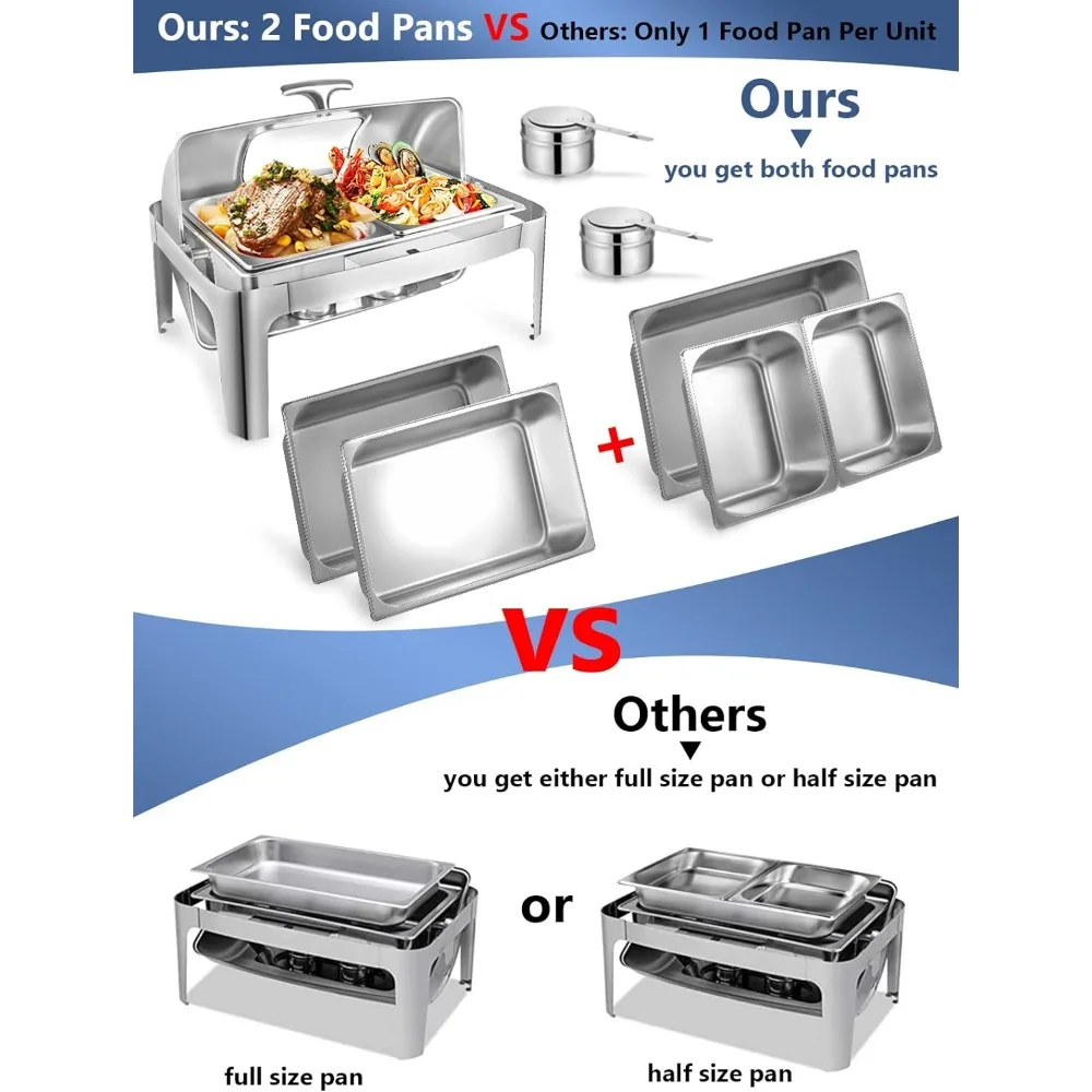 - 【Get An Extra Food Pan】Unlike other catering food warmers, 1 food pan per unit, we give you 2 food pans, full size food pan and 2 half-size food pan, giving you more options and flexibility at a party.