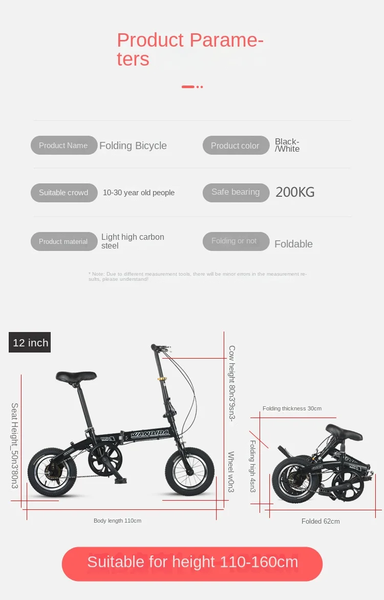 Small Wheel 12 Inch Men's/Women's Folding Bike, Lightweight Portable