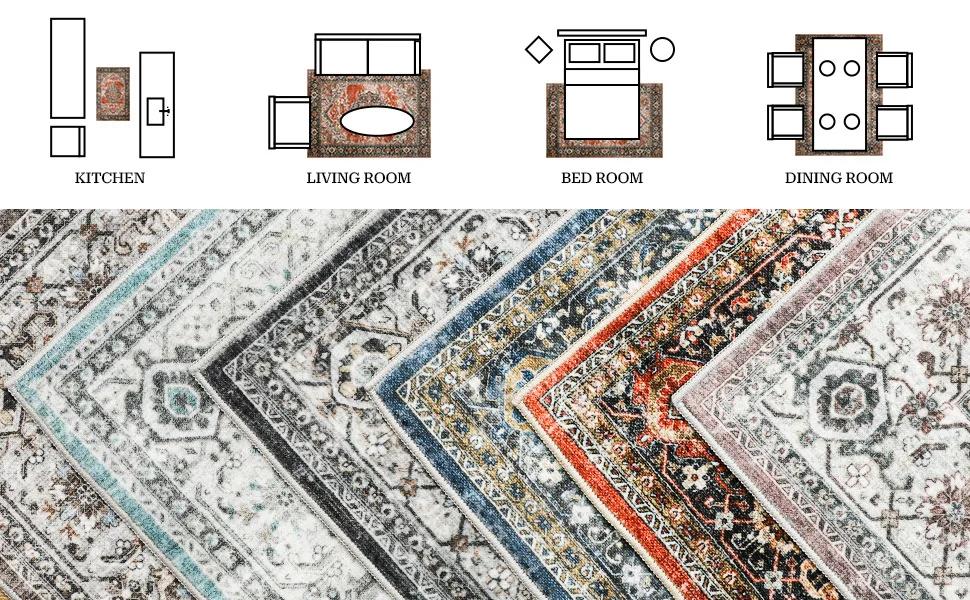 Cochyean Vintage Area Rugs are perfect for any home and style. The high-quality, eye-catching designs and soft, plush textures of the rugs will add comfort, warmth and style to any space. The unique designs of our rugs provide a fashion-forward statement that’s sure to gain compliments from guests. Plus, they are perfect for protecting your floor from damage caused by rough traffic, pets and kids.