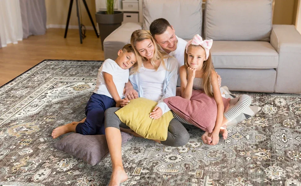 Washable Area Rug 9x12 - Rugs, Soft Oriental Vintage, Non-Slip Backing