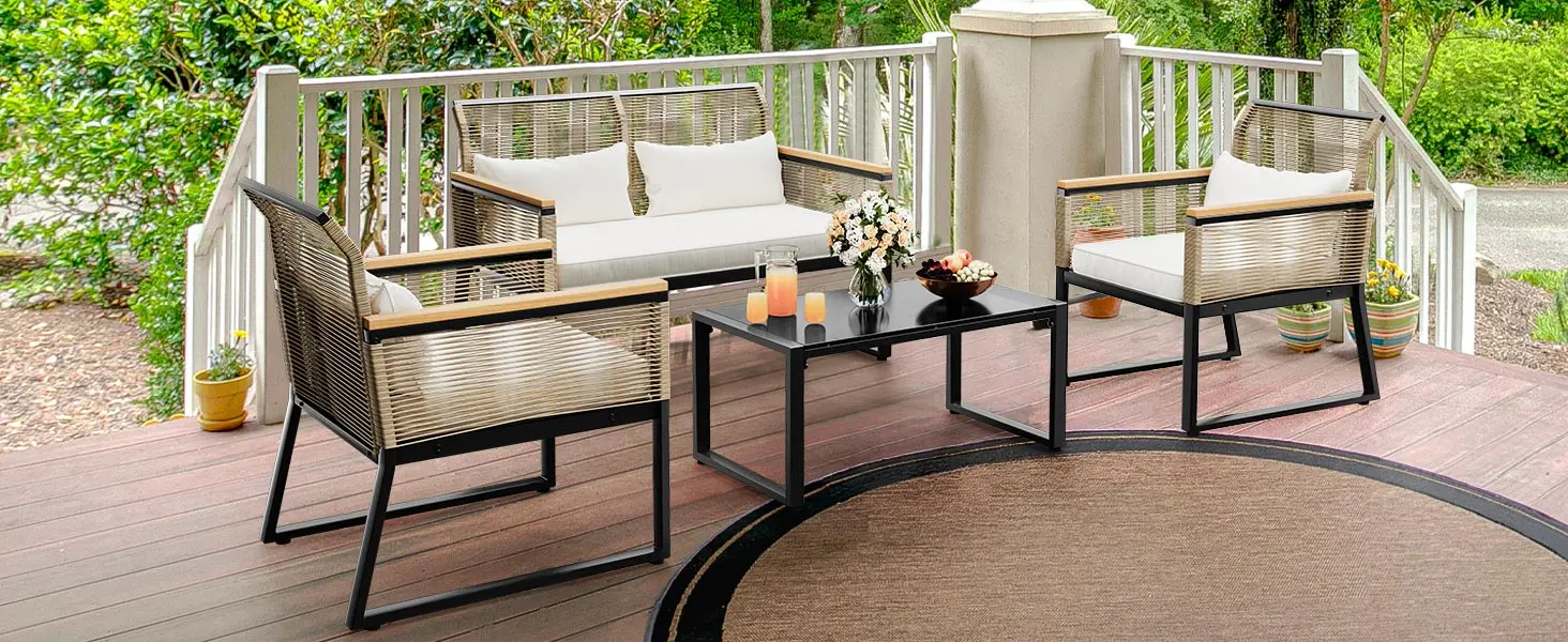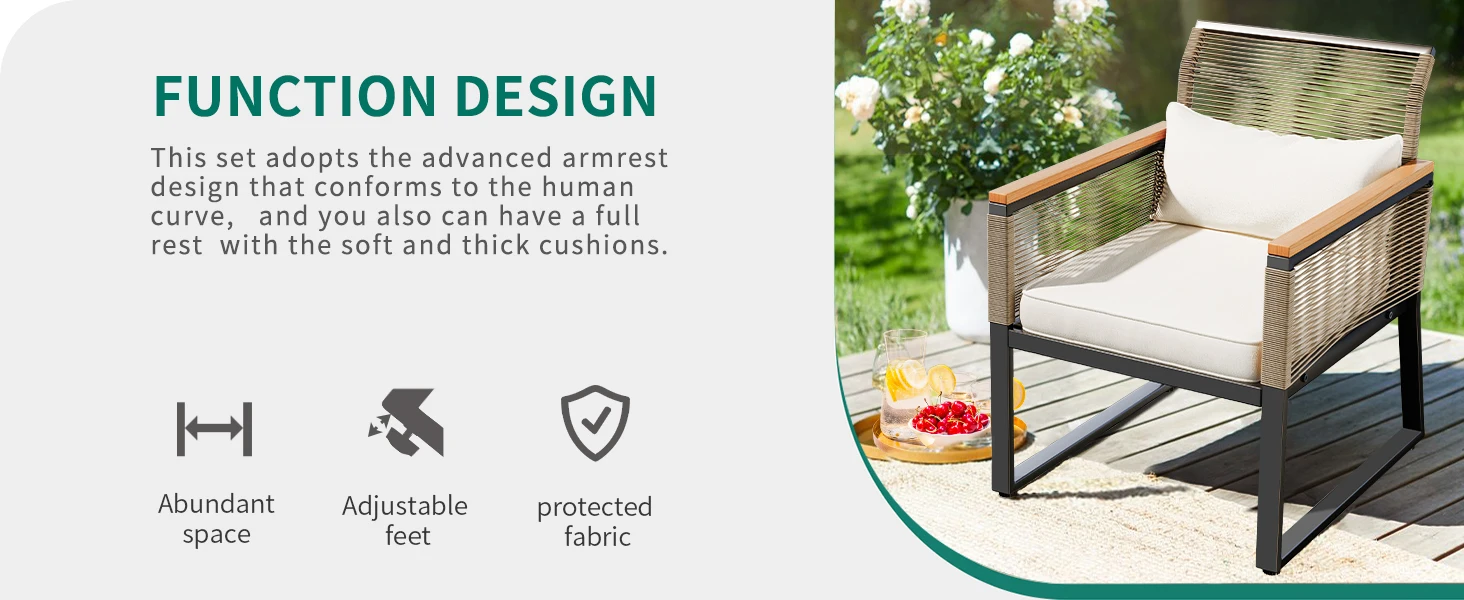 - ERGONOMIC DESIGN: Curved backrest comes with thickly padded cushions and pillows for comfortable sitting and fatigue relief; Ample seat space allows you to leisurely chat with your family and friends